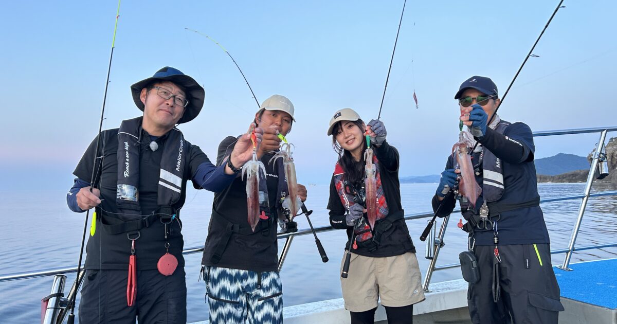 15日(土)シロイカ便です♪ 今日もツルペタ潮無しの好条件! 日の暮れ前にいい群れが入り、つぎつぎに竿が曲がります🤩 早くも全員安打の30杯から40杯くらいは獲れたのでは…🙌 点灯後は少し釣れない時間もあり…