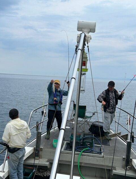 18日(日)のシロイカ便です♪ 今日も明るいウチは沖を流しました🛥️ ポロポロとシロイカ、魚と釣れて、多い人で3、4杯釣れてました! みんなの竿が一斉に曲がり出すと、気持ちいいですね😊 かなり心に余裕を持って、浅場に移動…