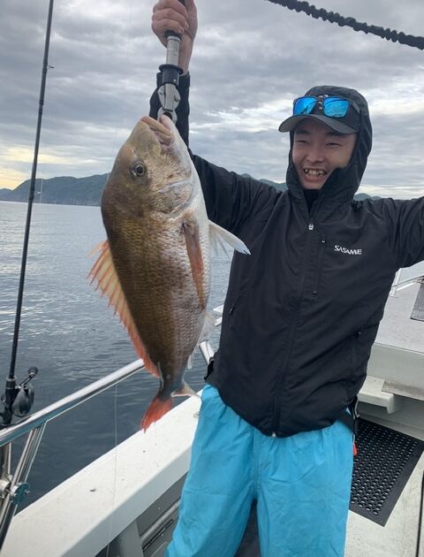 天気 くもり 風向 風弱く 波高 凪 潮 上り 水温 18℃ 曇り空で涼しかったです♪ まずは渡船の合間のタイラバ&ジギング🎣釣果から🛥 通し釣りの迎えがあったりで、少し出遅れましたが…😅 何とかマダイの顔は拝め…