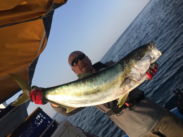 天候 くもり霧雨 風向 北東 波高 0.5~1m 潮 上り 船からキャスティング&ジギングです(^^)/今日は、浅場でメジロがよくボイルしていて、キャスティングに好反応でした(*^^)v ヒラマサも混ざり、…