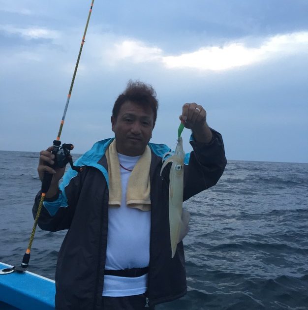 天候 くもり雨 風向 南 波高 ベタ凪 潮 止まり 今季2回目のイカ釣りでした(^^)/ 今日は訳あって、少人数での出船になりました(^_^;)前回同様、厳しい釣りを予想。。。案の定、日の暮れ大剣サービスタイム…