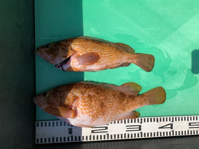 磯釣り 最近の磯釣り🎣 Tweet 2022.07.03 連日の猛暑で磯のお客さん少ないです🥲 来られる方はしっかりと、熱中症対策をしてお越し下さい🙇♂️ 風の強くない日は、タープやパラソル⛱が有効だと思います💦 ジギングでコマサ、ロックフィッシュでアコウ 、半夜カゴ 釣りでグレなど釣れました👍 良型グレ40cm まで3枚👌 スズキ&アコウ 🐟 月曜日も出船予定です♪ 水曜日は台風の影響で、波が上がりそうな感じです😅