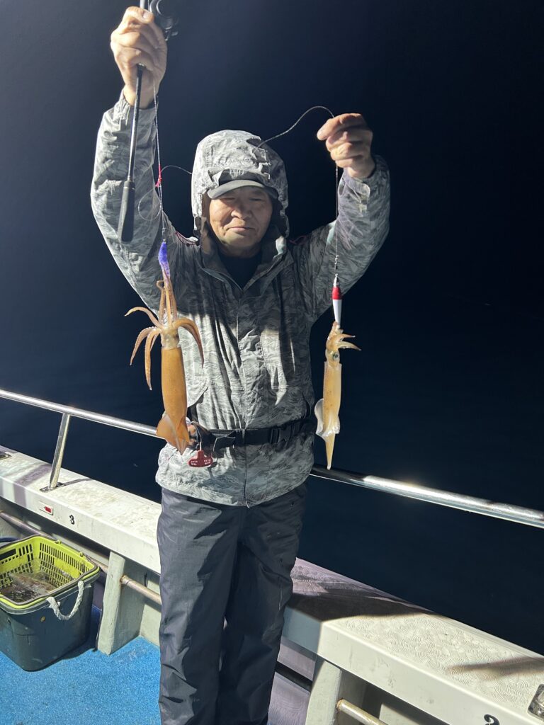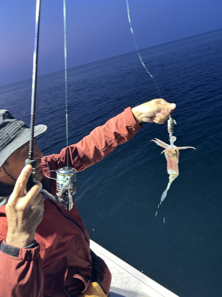 点灯後は大きな波はなく、たまにポロっとヤリイカ、シロイカ、スルメイカと満遍なく😅