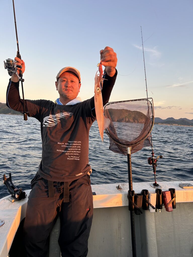 イカが上がってくる喜びを噛み締めながら😂