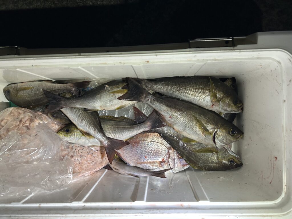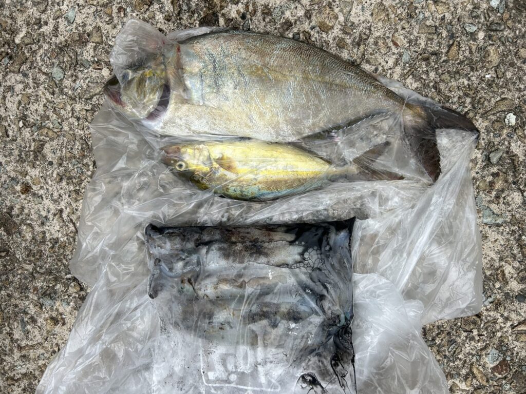 なかなか難しい条件でしたが、ロックフィッシュでアコウ、ジグでシオ、エギングでアオリ、カゴでイサキなど釣れていました🎣