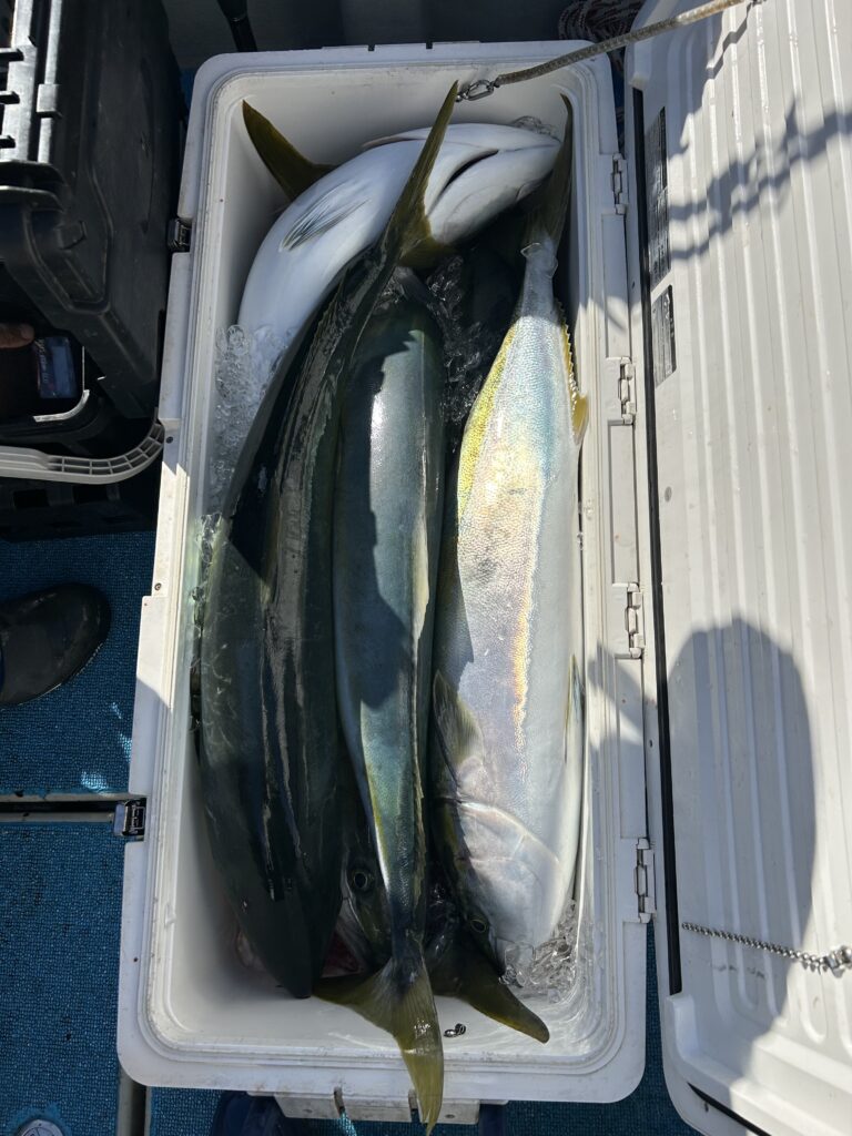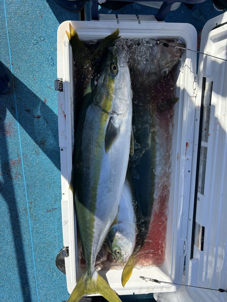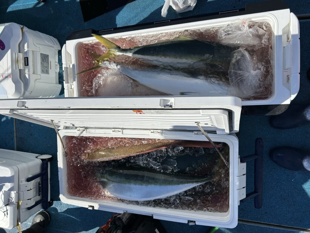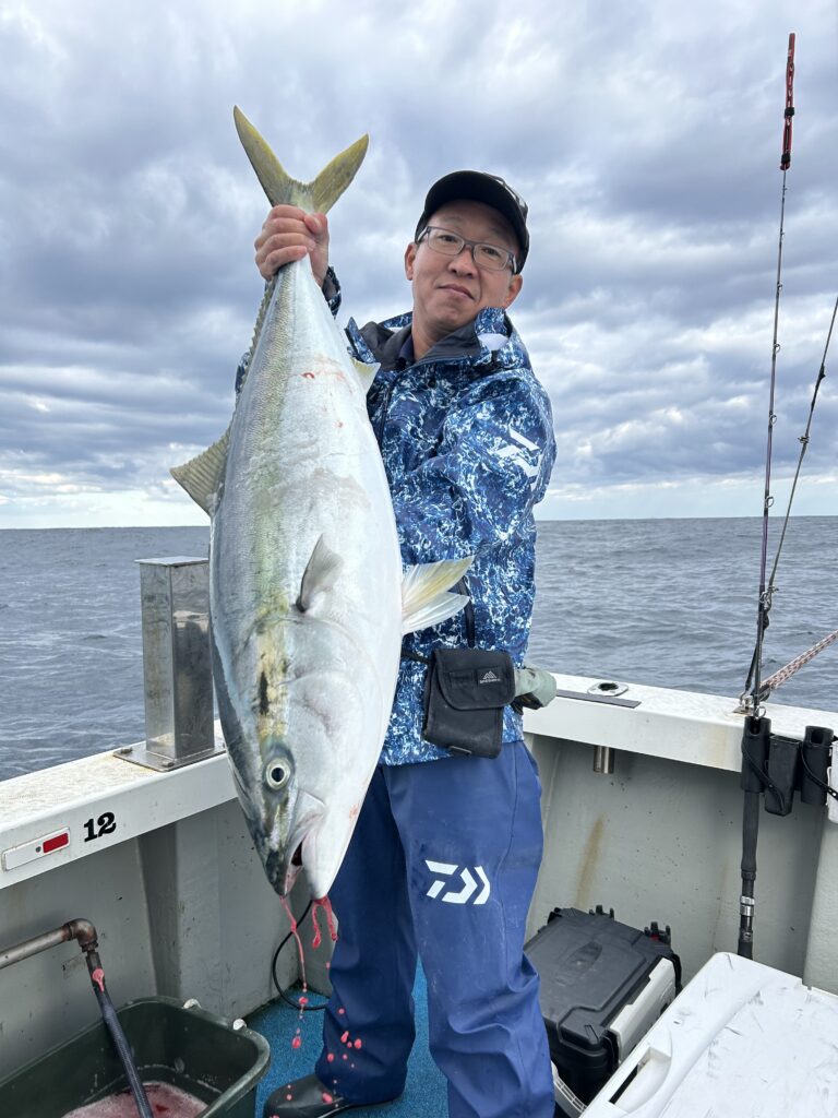 波高く船酔いの方もおられ、竿数減りましたが、竿を出されていた方はブリに引っ張り回されてヘロヘロ😅