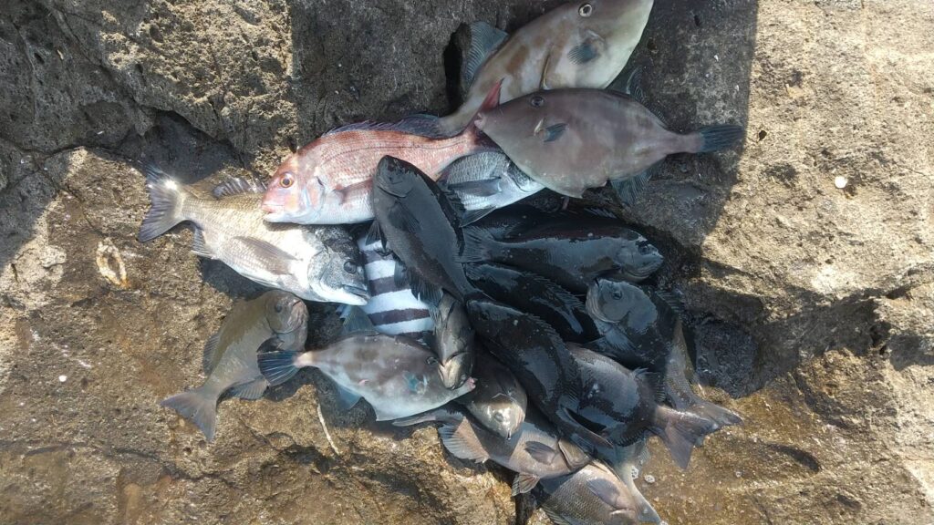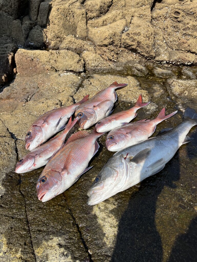磯釣り 23日(月)マダイ🐟 Tweet 2026.03.23 天気雨晴れ 風向東 波高0.5m 潮速い 水温13.5℃ 朝のうち結構激しめの雨が降り、予報にあったかなぁ…🤔 潮は速く、いい凪になりましたが… 昨日好釣だったエリアは、イマイチ…😂 難しいですね🤨 カゴ釣りでマダイ、ルアーでスズキ🐟 ふかせでグレ、チヌ、マダイ、ウマヅラなどなど…今日は大物釣れずでした😅 茶釜 カゴ マダイGET👍 立島 ふかせ 色々釣れました🎣 今週凪が続きます🏖️ お電話お待ちしてます♪