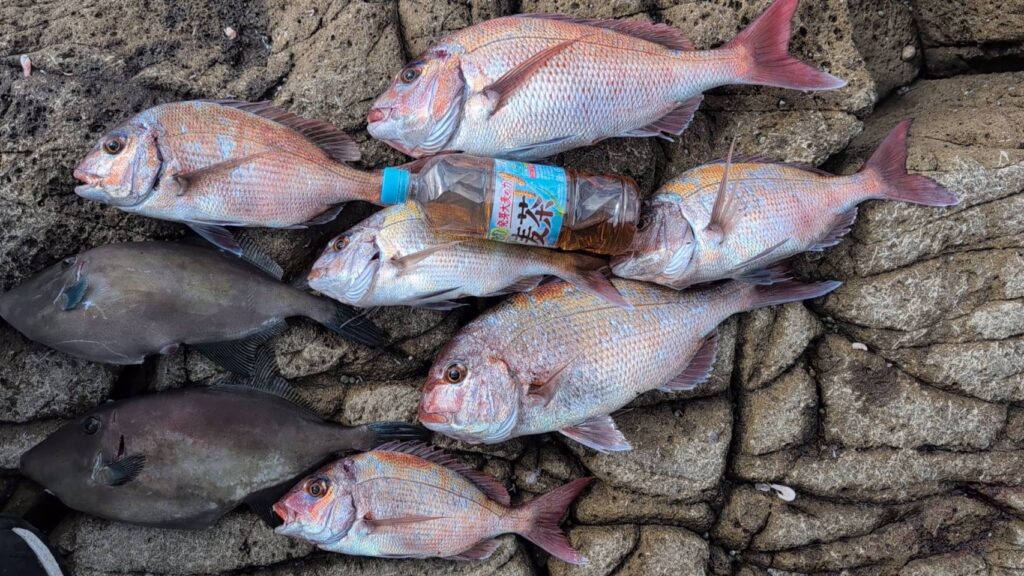 磯釣り 26日(木)マダイ🐟 Tweet 2026.03.26 天気雨くもり 風向北東 波高0.8m 潮緩い 水温13.8℃ 今日も夜の間に波が上がり中々の波に…😅 東寄りの波で陰ができました! 波も次第に良くなって来ましたが、潮はイマイチ流れてなかったです💦 それでもカゴ釣りでマダイが釣れてました🙌 茶釜 カゴ マダイ6枚👍 清水のすい ふかせ グレ30cmまで👍 チモト切れありました🥲