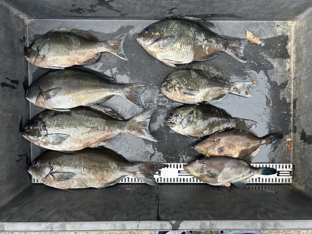 途中当たりが遠のく時間がありましたが、昼前に再びポロポロと釣れて、14、8、7匹何とかお土産確保🙆♂️