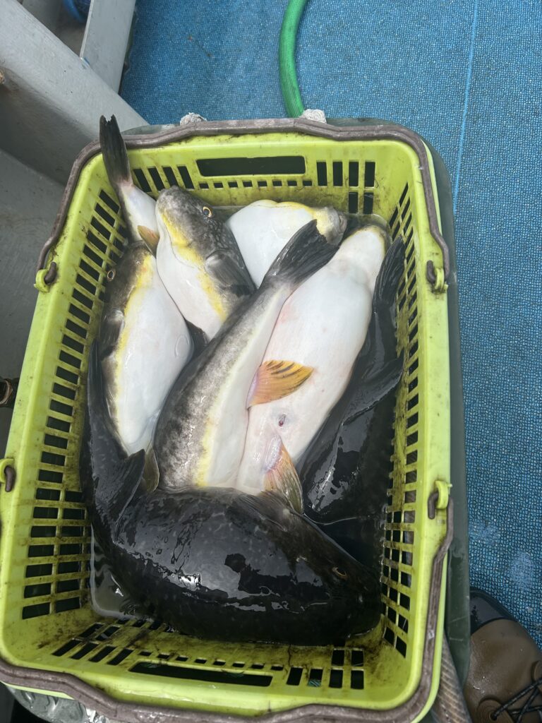 船釣り 18日(土)マフグ爆🎣 Tweet 2026.04.18 18日(土)磯のお客さんを降ろしてからマフグ狙いに出船🛥️ 潮は速く1ノット超え🙆♂️ 感度が出た所を流すと、めちゃくちゃ反応良く全員ヒット🙌 始めは、しばらく流すとアタリが遠のき、再び感度を探して、流し直し… しかし、時間なのかデカい群れに当たったのか、ずーっと当たりっぱなしに🤣 皆さん20匹超え😍 産卵を終えたような個体も混ざりましたが、白子バンバンの個体も混ざりよく釣れました🙆♂️ もう少しマフグ釣りも楽しめそうです👍