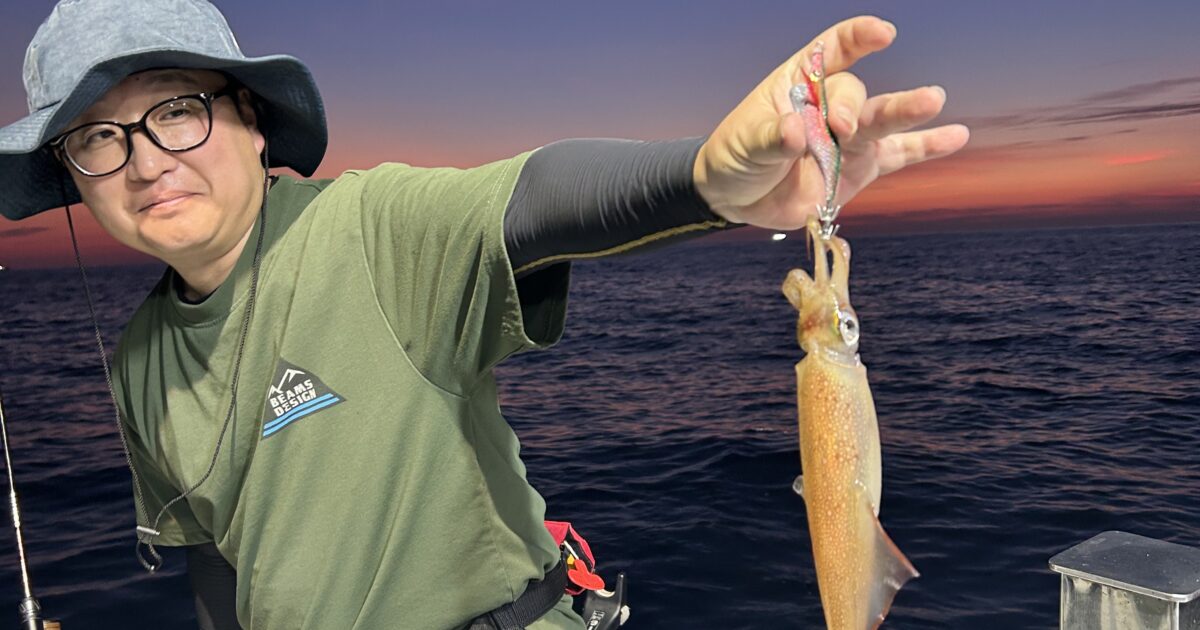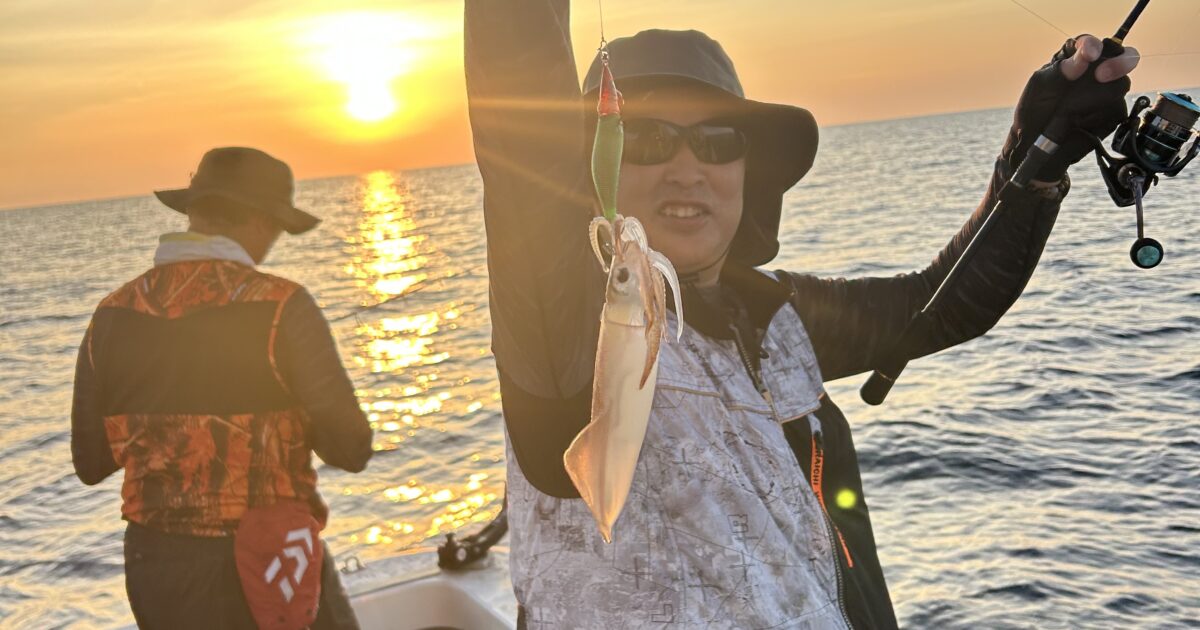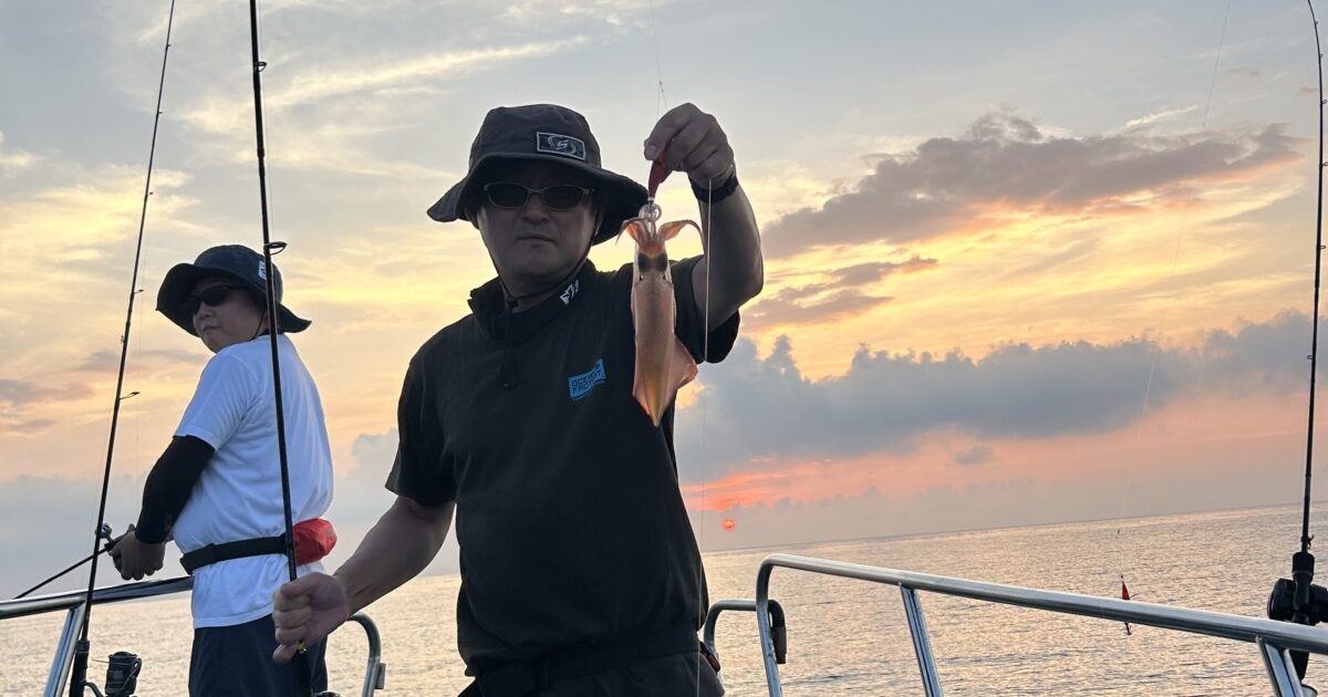 23日(土)シロイカ便、好調です🦑 前日、好調だった場所に向かいアンカーを入れました! 日も傾いて来た頃にパラパラと竿が曲がりましたが… 日の暮れが近づいてくると徐々に潮が速くなって来て… これはマズイと思い、僚船と連絡…