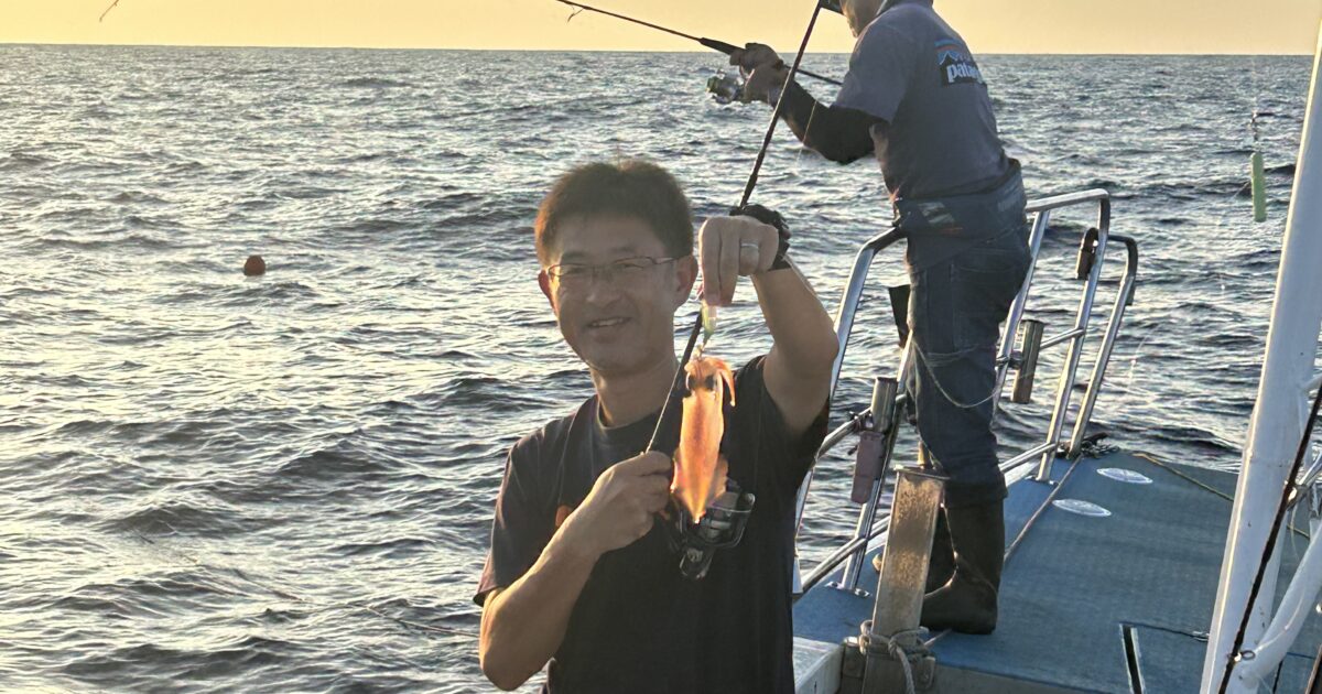 30日(土)シロイカ便、好調でした🦑 沖に出ると潮が速い… 試しに仕掛けを入れてもらうと、底は流れてません💦 上と下の潮が違い過ぎるので、アンカーを入れる事に⚓️ 上潮は流されますが、底まで入れると、仕掛けが帰って来ます…