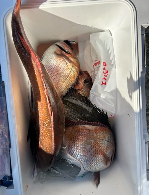 天気晴れ 風向南西〜南東 波高0.8m 潮上り 水温15.5℃ 予報通り次第にウネリが出てきましたが、3時までやれました🙆♂️ 南西〜南東の風がやや強く、潮がだんだんと速くなりました😅 今日はカゴ、ふかせ 共に好釣果で…