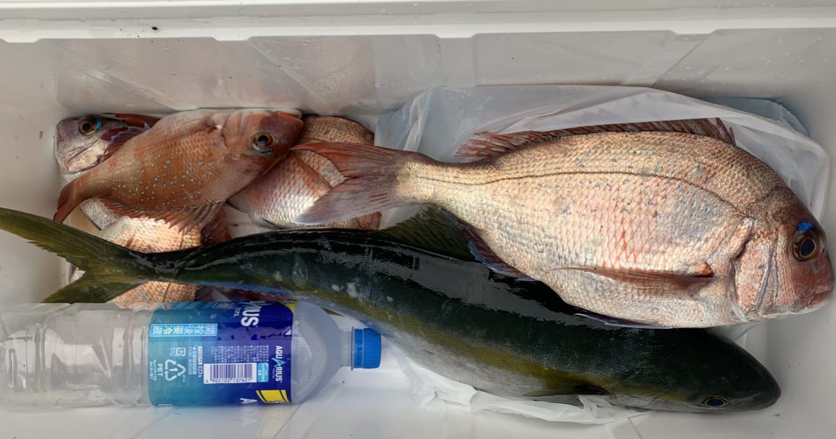 天気 もり雨 風向 南西 波高 凪 潮 速い 水温 16°C 南風が吹いたり止んだりで、べた凪でした! 昨日までの逆潮は元に戻り、速すぎるくらいに…(^_^;) カゴ釣り ヒラマサGET! カゴ釣り ふかせ…