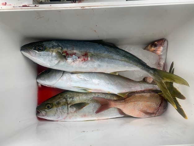 天気 くもり小雨 風向 西 波高 0.5m 潮 上り 水温 25.8℃ 雨予報でしたが、気になるような雨は降りませんでした(;^ω^)今日はカゴ釣りで、良型ヒラマサが釣れました(^^)/ 茶釜 畑中さん カゴ釣り…