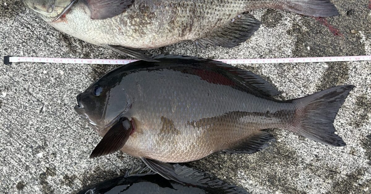 天気くもり雨 風向南西〜西 波高凪〜0.7 潮緩い 水温12.7℃ 久しぶりの出船になりました😅 平日でお客さん少なかったですが、意外にも良型グレが釣れてました🙆♂️ 茶釜 ふかせ グレ45cmクラス👍 …