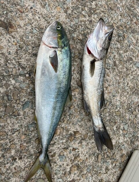 天気くもり 風向風弱く 波高凪 潮上り 水温19℃ くもり空で過ごしやすかったです♪ 朝イチにトップとジグでメジロGET🙆♂️ 茶釜 トップ メジロGET✌️ 東肩 ジギング 朝イチにメジロ…